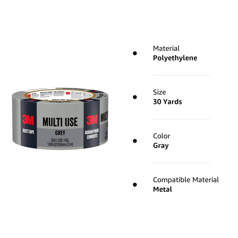 Cinta Ductos (Duct Tape) Multi Usos 3M, 2930-C, de 1.88 Inches de alto por 30 yardas de largo.