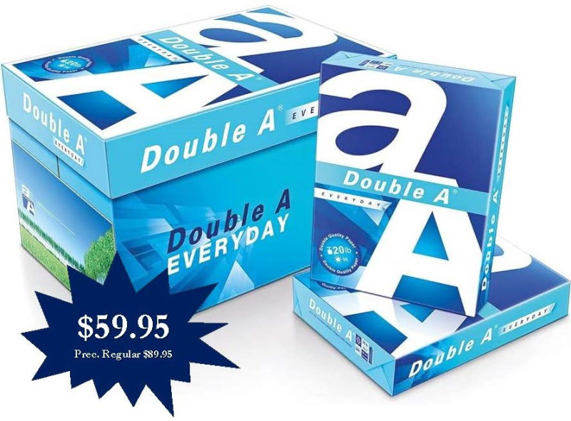 Entrega o Recogido de 40 Cajas (1 Paleta). Con la compra de 40 Cajas de Papel Double A (Tamaño Carta), el precio especial sera de $59.95 por cada caja. Precio individual es de $89.95 por caja.