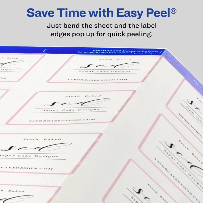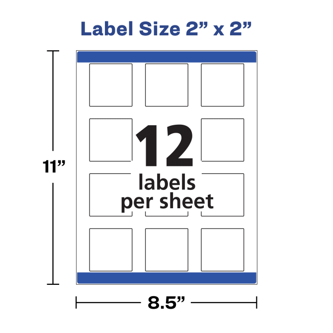 Utiliza el software gratuito de Avery, para crear e imprimir tus propias etiquetas con el template que te brindan. Avery® 2" x 2" Square Labels with Sure Feed, 120 Labels, Permanent Adhesive, Glossy Clear # 22853