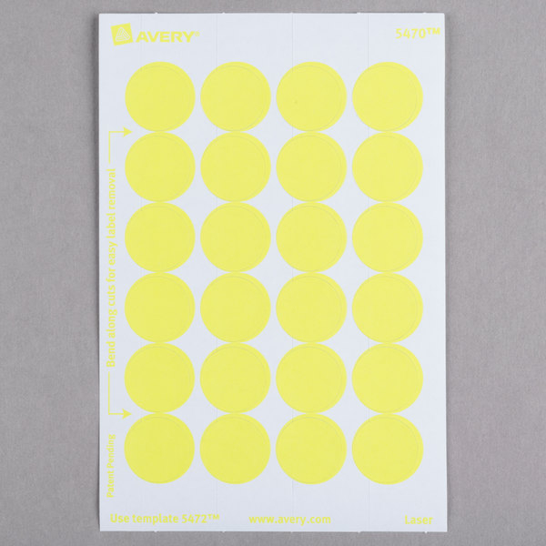 Utiliza el software gratuito de Avery, para crear e imprimir tus propias etiquetas con el template que te brindan. Avery® 3/4" Neon Yellow Round Removable Write-On / Printable Labels - 1008/Pack # 05470