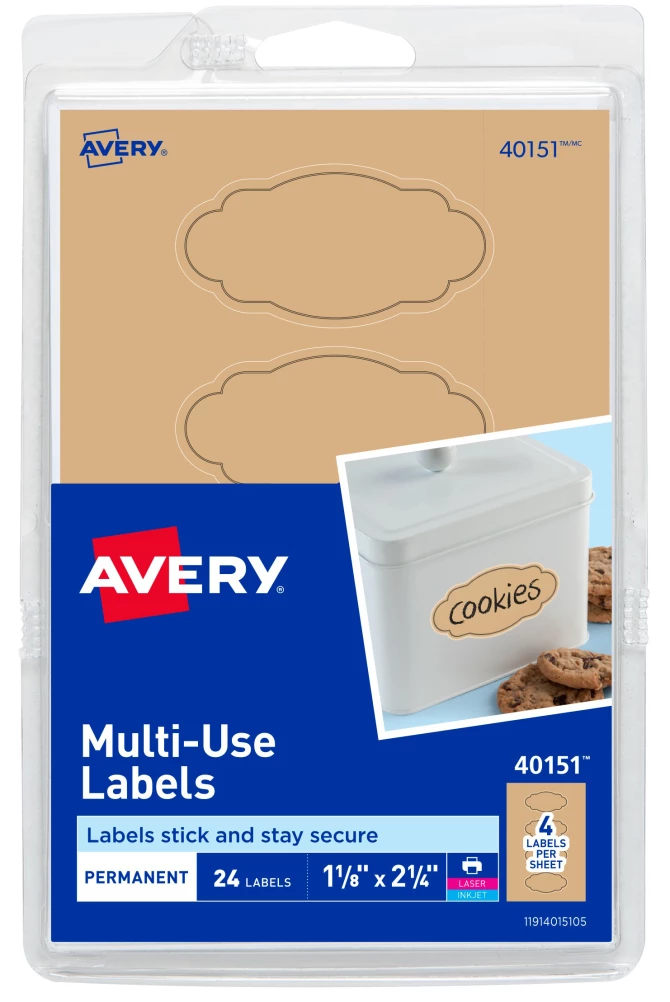 Avery® Scallop Labels, Permanent Adhesive, Kraft Brown, Black Border, 1-1/8" x 2-1/4", 24 Labels # 40151