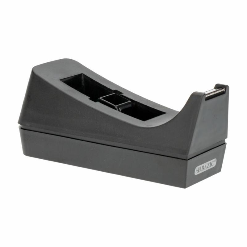 Dispensador de cinta adhesiva, marca Basic, ideal para escritorio. Sostiene una cita de hasta 19mm de ancho, en un area de 2,54 centimetros. Esta hecho de plastico resistente de alto impacto con una base antideslizante y con peso, para mayor firmeza. Tiene cuchilla duradera y de alta calidad.