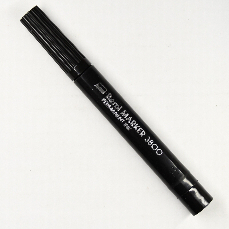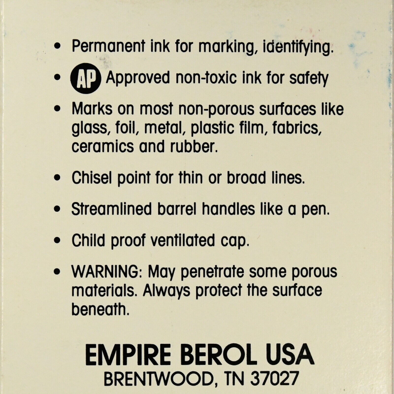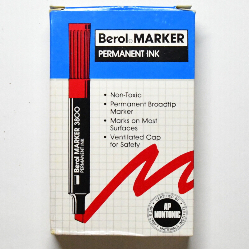 Marcadores de tinta permanente Berol, colors negro, rojo, verde y azul. Modelo 3800 con punta ancha. Punto de cincel, marcador no es tóxico.