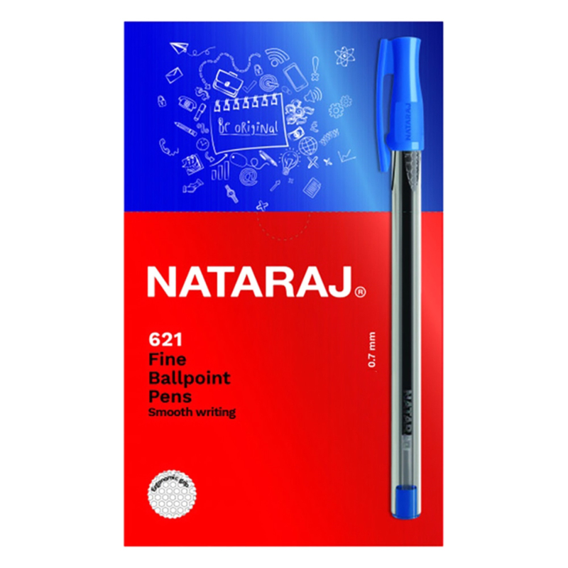 Nataraj 621, fine ballpoint pens for smooth writing, blue, F 0.7mm, 10pack.