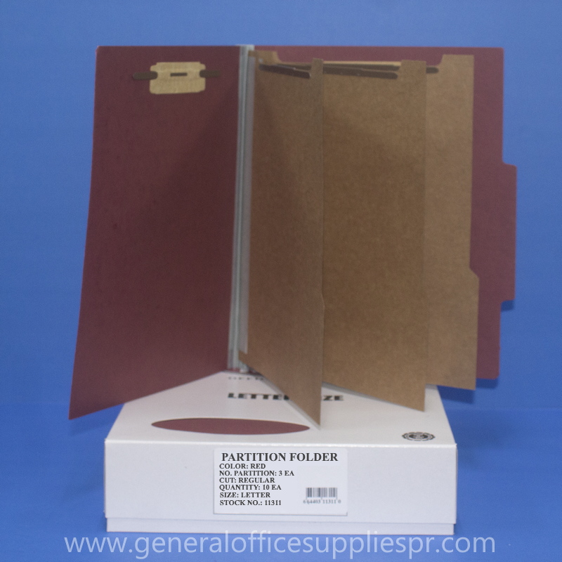 Partition Folders, Standard, 3 Divider, Bonded Fasteners, RED, Letter, 10 per box. Item Number: 11311 ATLAS