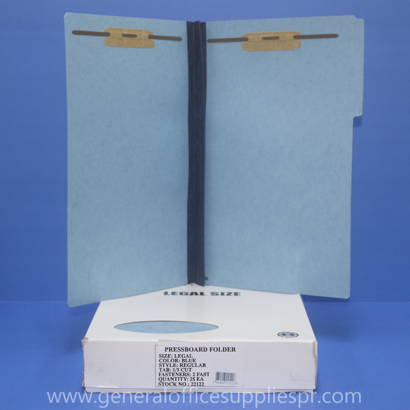 Pressboard Folder, Blue, 1/3, Legal, 2 Fastener, Item Number: 22122 ATLAS