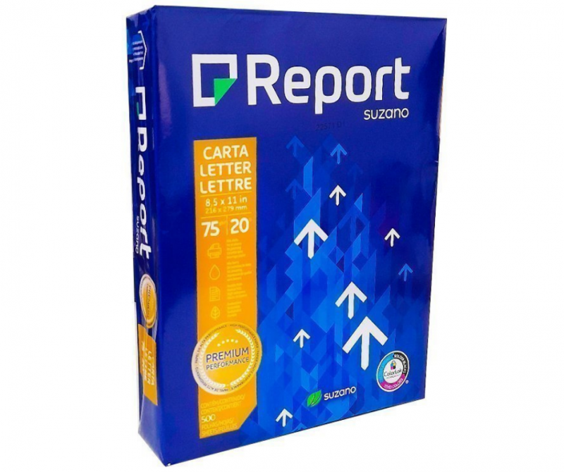 Report Suzano Premium performance paper, letter size 8.5x11, 20lbs, made in Brazil, 500 sheets per ream, 10 reams per box.