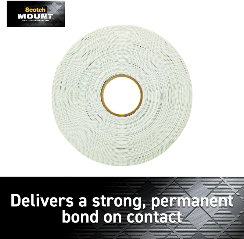 Ofrece una unión fuerte y permanente al contacto. Diseño fácil de aplicar sin desorden ni herramientas. Ideal para uso en superficies acabadas/pintadas, metal, azulejos y más. Diseñado únicamente para uso en interiores. Asegúrese de que su superficie esté lisa, limpia y seca para obtener la mejor unión. Tamaño: 3/4in x 38yd Mega Roll. Scotch - Mega rollo de cinta de doble cara para montaje, 3/4 pulgadas x 114 pies, cinta blanca de montaje en interiores, cuenta con adhesivo de resistencia industrial 3M, sin desorden ni herramientas.