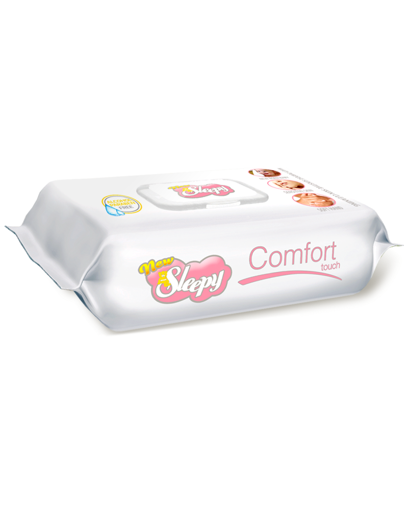 New Sleepy Touch, Multi-purpose sensitive skin fresh scent cleaning, alcohol free wipes - Variety: Comfort , Creamy, Natural and Smooth Toallitas humedas sin alcohol con aroma fresco, 64 unidades por paquete. Suave para las manos y para la piel sensitiva. Contiene poliester. Desechables. Ideal para picnics, viajes en auto, avión o usarlas luego de hacer deportes. Descarte solo en zafacones, no en toilets.