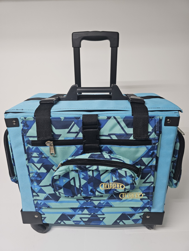 Bulto con ruedas marca Tripper. Hechos en Puerto Rico. Combinación de varios tonos. Cada uno incluye: Una Lonchera con abertura tipo "Wide Mouth" y una cartuchera con hebilla que se adhiere al bulto. Ademas, cada bulto viene equipado con: Dos bolsillos insulados a cada lado. Bolsillos tipo sobre, con zipper al frente. Capacidad de sobre 6 resmas. Correa tipo maleta para colgar cartuchera incluida o un bulto adicional. Sistema "Big Wheel" de dos ruedas grandes traceras para cómodo desplazamiento silencioso y dos ruedas giratorias al frente.