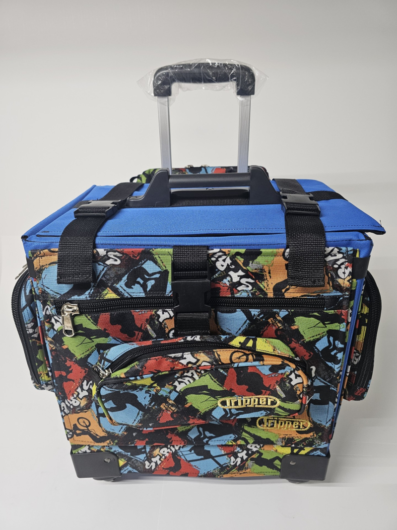 Bulto con ruedas marca Tripper. Hechos en Puerto Rico. Combinación de varios tonos. Cada uno incluye: Una Lonchera con abertura tipo "Wide Mouth" y una cartuchera con hebilla que se adhiere al bulto. Ademas, cada bulto viene equipado con: Dos bolsillos insulados a cada lado. Bolsillos tipo sobre, con zipper al frente. Capacidad de sobre 6 resmas. Correa tipo maleta para colgar cartuchera incluida o un bulto adicional. Sistema "Big Wheel" de dos ruedas grandes traceras para cómodo desplazamiento silencioso y dos ruedas giratorias al frente.