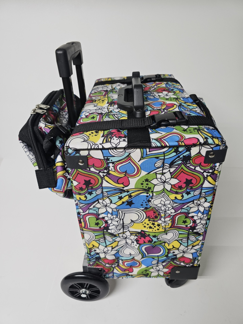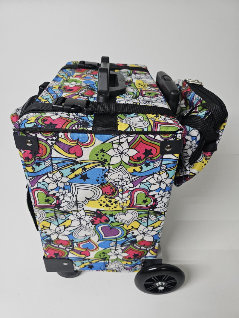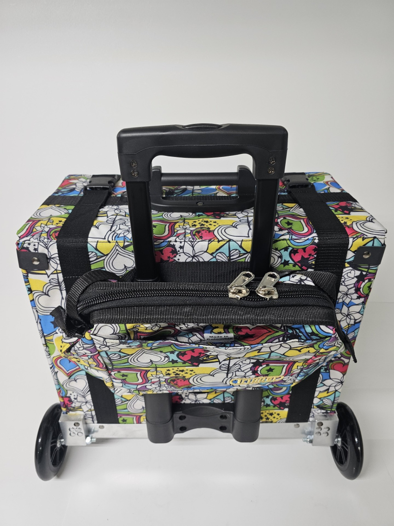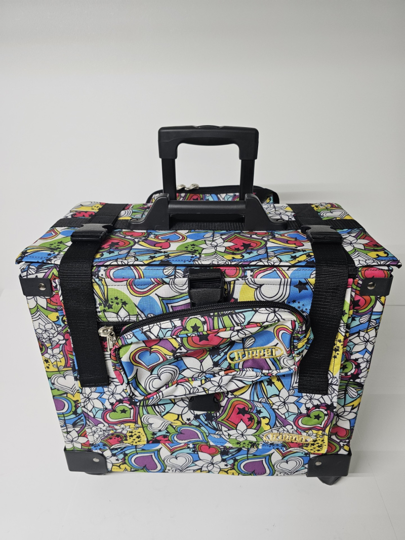 Bulto con ruedas marca Tripper. Hechos en Puerto Rico. Combinación de varios tonos. Cada uno incluye: Una Lonchera con abertura tipo "Wide Mouth" y una cartuchera con hebilla que se adhiere al bulto. Ademas, cada bulto viene equipado con: Dos bolsillos insulados a cada lado. Bolsillos tipo sobre, con zipper al frente. Capacidad de sobre 6 resmas. Correa tipo maleta para colgar cartuchera incluida o un bulto adicional. Sistema "Big Wheel" de dos ruedas grandes traceras para cómodo desplazamiento silencioso y dos ruedas giratorias al frente.