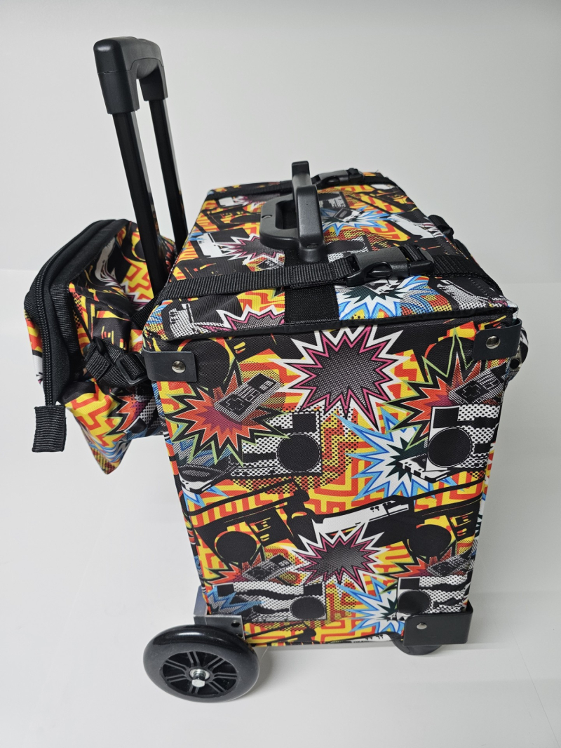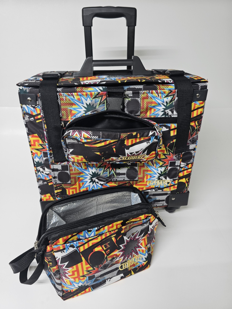 Bulto con ruedas marca Tripper. Hechos en Puerto Rico. Combinación de varios tonos. Cada uno incluye: Una Lonchera con abertura tipo "Wide Mouth" y una cartuchera con hebilla que se adhiere al bulto. Ademas, cada bulto viene equipado con: Dos bolsillos insulados a cada lado. Bolsillos tipo sobre, con zipper al frente. Capacidad de sobre 6 resmas. Correa tipo maleta para colgar cartuchera incluida o un bulto adicional. Sistema "Big Wheel" de dos ruedas grandes traceras para cómodo desplazamiento silencioso y dos ruedas giratorias al frente.