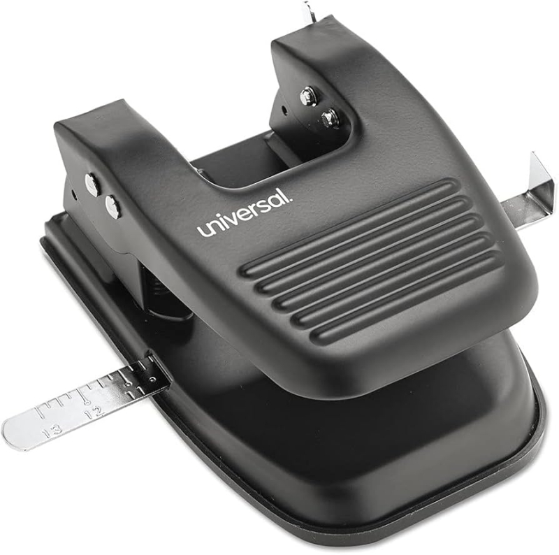 Rotera de doble aberturas marca Universal, de hasta 30 hojas de tamaño ajustable 9/32" en color negra -UNV74222