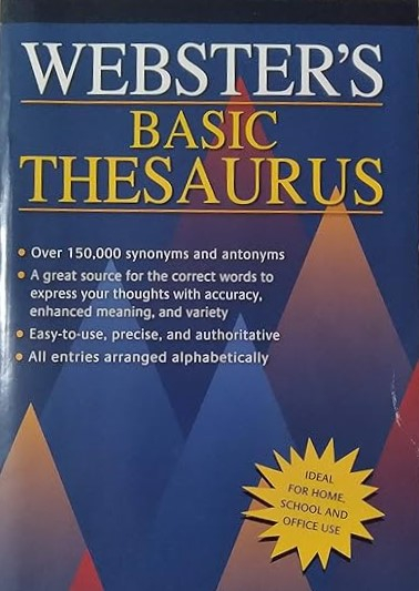Webster's Basic Thesaurus - Minerva Books. Over 150,000 synonyms & antonyms. A great source for the correct words to express your thoughts with accuracy, enhanced meaning, & variety. Easy-to-use, precise, & authoritative. All entries arranged alphabetically. Ideal for home, school, & office use. Compact size (5.5"x8").