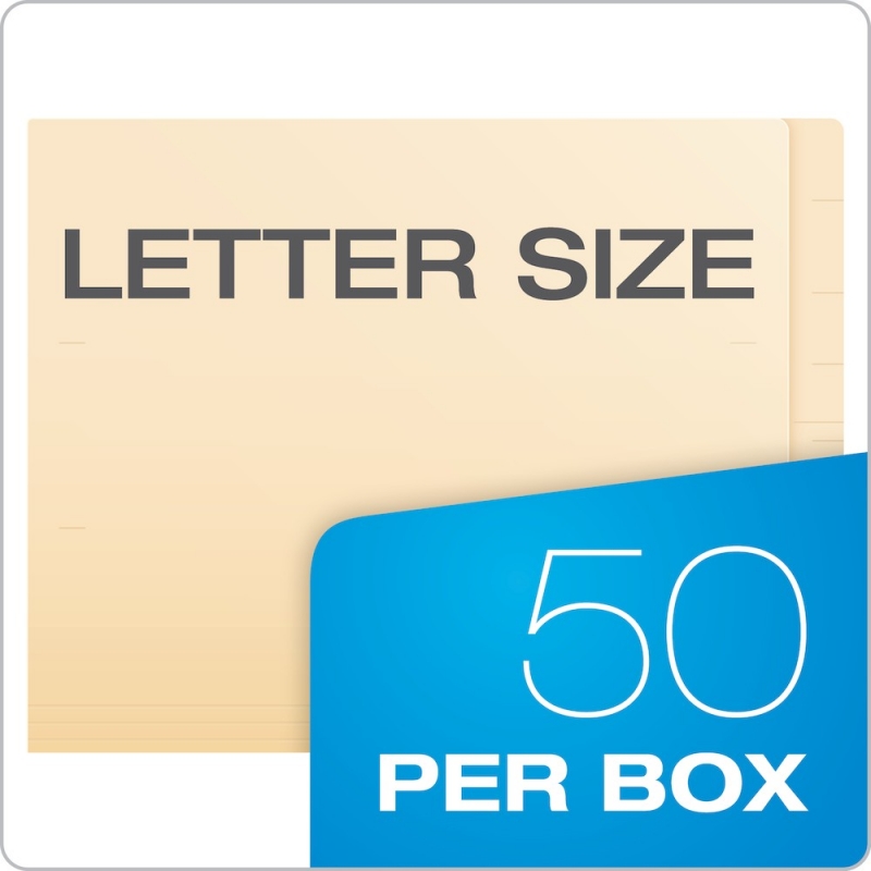 Pendaflex Manila End-Tab Fastener Folders, Letter Size, 1 Fastener, Manila, Straight Cut, 50/BX. Item Number: H1QU1.