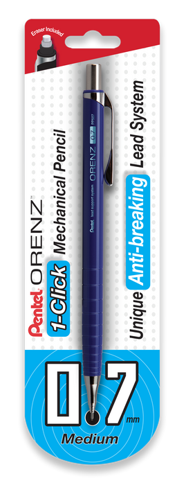 Pentel Orenz, 1-click mechanical pencil, 0.7mm medium, unique anti-breaking lead system, eraser included.