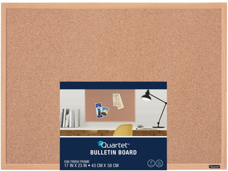 Quartet Bullentin Board oak finish frame, 23INx35IN, tackable, mounting.