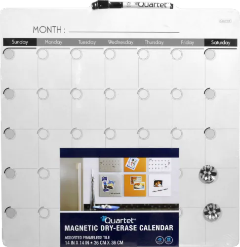 Quartet Frameless, magnetic dry-erase calendar, 14INx14IN, magnetic, modular, One month calendar.