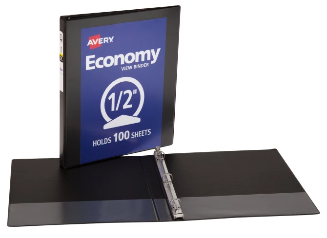 Economy View Binder, 1/2" Round Rings, 100-Sheet Capacity, Black, # 05751