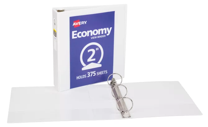 Avery® Economy View Binder, 2" Round Rings, 375-Sheet Capacity, White # 05780