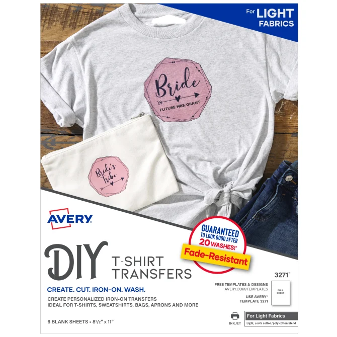 Utiliza el software gratuito de Avery, para crear e imprimir tus propias etiquetas con el template que te brindan. Fabric Transfers for Light Fabrics, 8-1/2" x 11", Inkjet Printer, 6 Matte Sheets # 03271