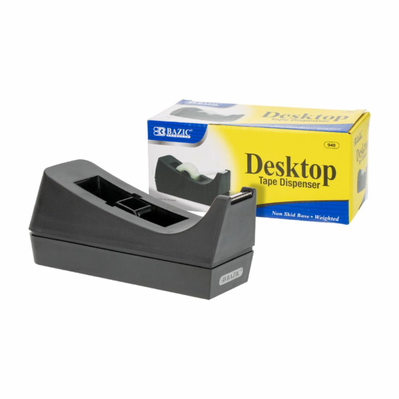 Dispensador de cinta adhesiva, marca Basic, ideal para escritorio. Sostiene una cita de hasta 19mm de ancho, en un area de 2,54 centimetros. Esta hecho de plastico resistente de alto impacto con una base antideslizante y con peso, para mayor firmeza. Tiene cuchilla duradera y de alta calidad.