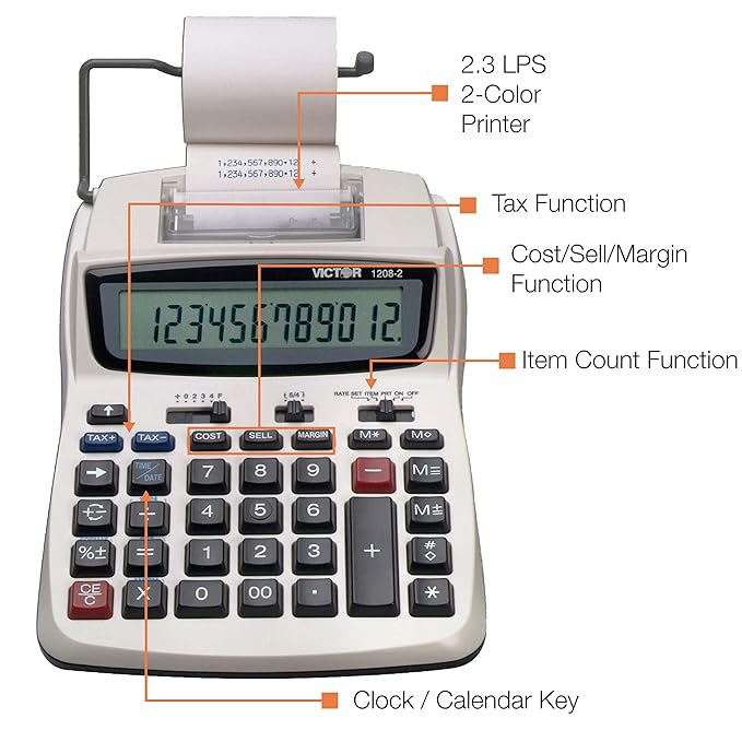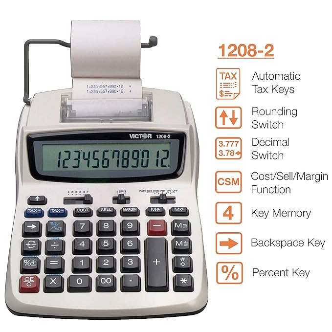 Calculadora con Impresora, Victor 1208-2 para negocios