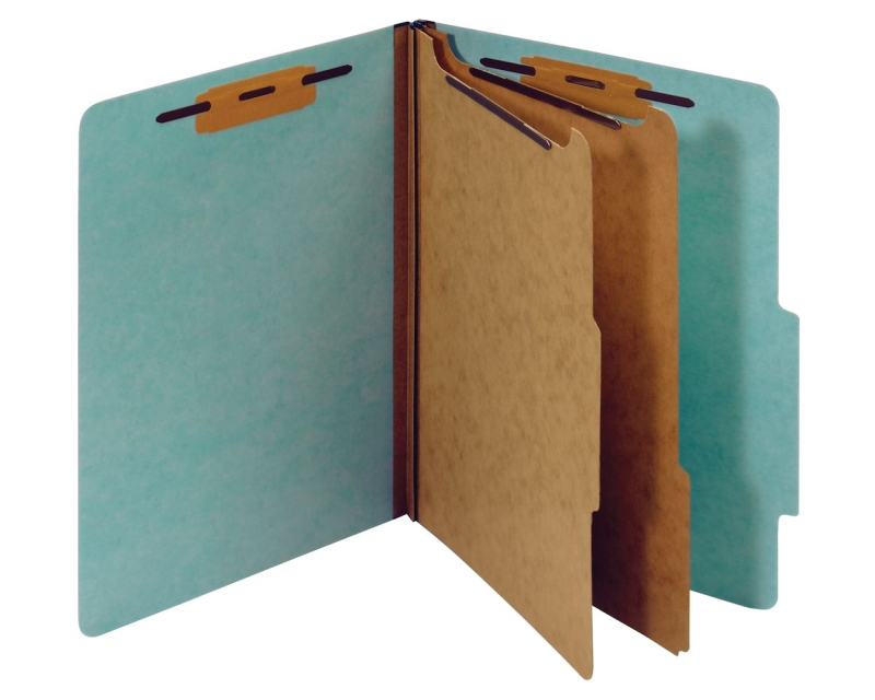 Classification Folders, Standard, 2 Divider, Bonded Fasteners, 2/5 Cut Tab, Light Blue, Letter, 20 per box. Item Number: PU61 LBL.