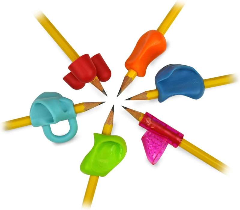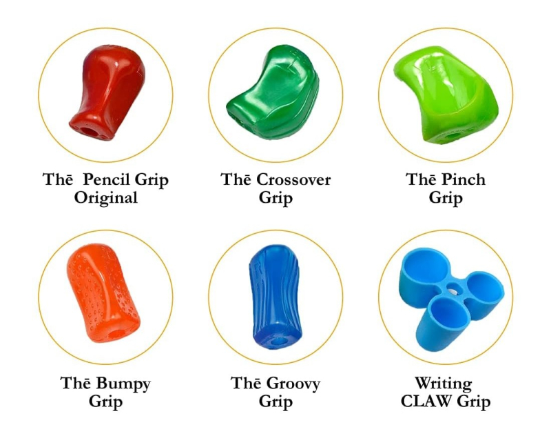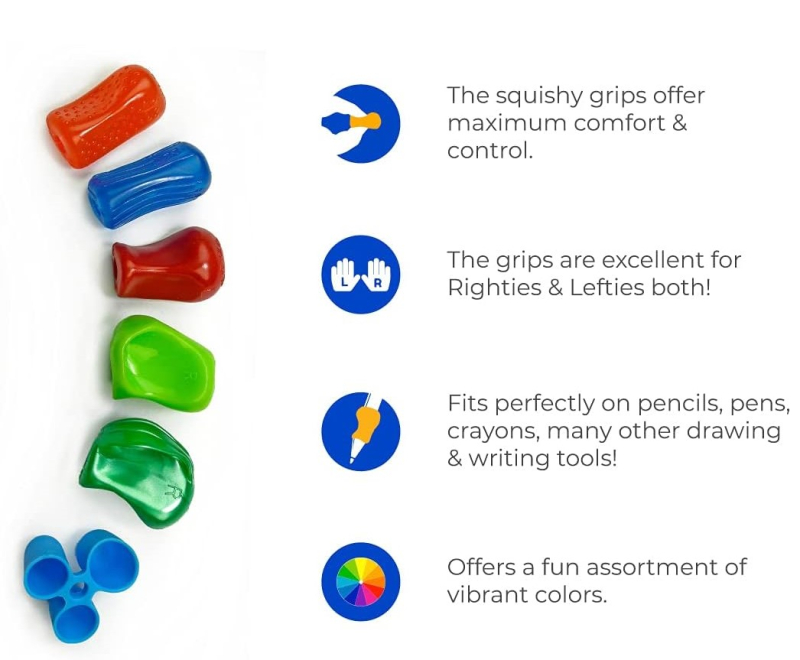 Designed By Doctors - Pencil Grip - For pencils, pens, crayons & many drawing and writing tools. Original Pencil Grip, Crossover Grip, Medium Size Claw Grip. Squishy grips for maximum comfort and control. Excellent for Righties & Lefties. Fits on pencils, pens, crayons & many drawing and writing tools. Fun assortment of vibrant colors. Empuñaduras para lápices premium, ayuda de escritura ergonómica universal para diestros y zurdos, pinzas de lápices coloridos. Varios agarres diferentes, colores surtidos.