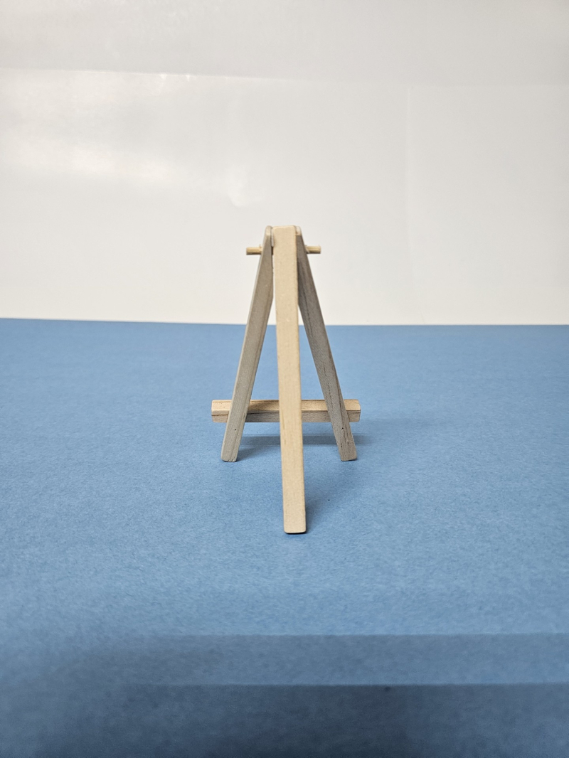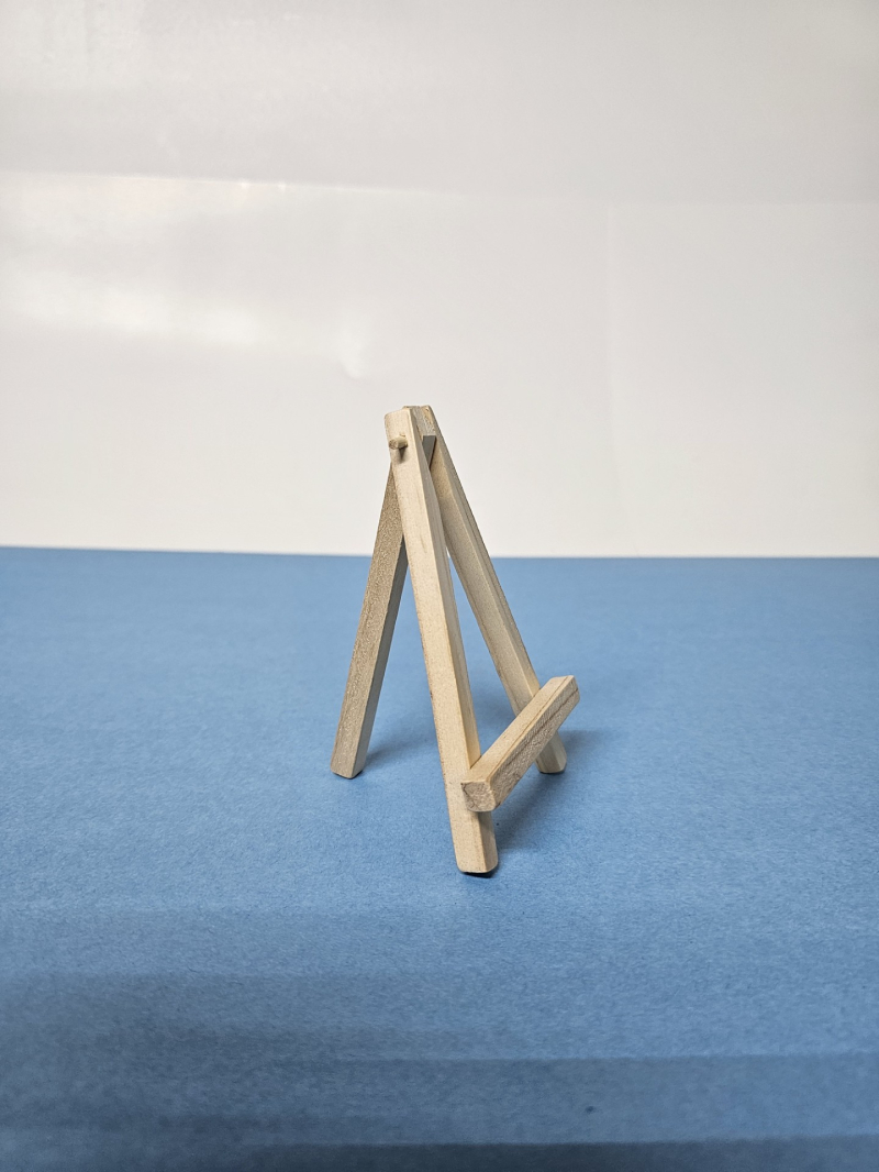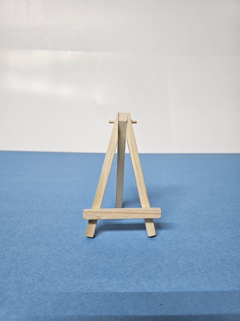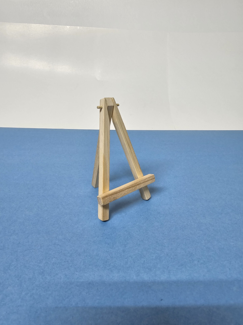 Pequeño soporte vertical de ángulo de aproximadamente 20° vertical. Ideal para los pintores para sostener un cuadro o mini canvas mientras trabajan en él. También se utilizan a veces para exhibir pinturas terminadas.