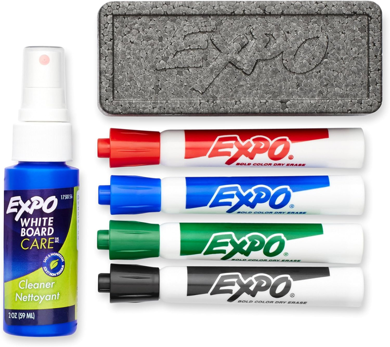Expo Dry Erase Set with 4 Markers, 2oz Cleaner and Eraser, for Whiteboards or Glass (80653)