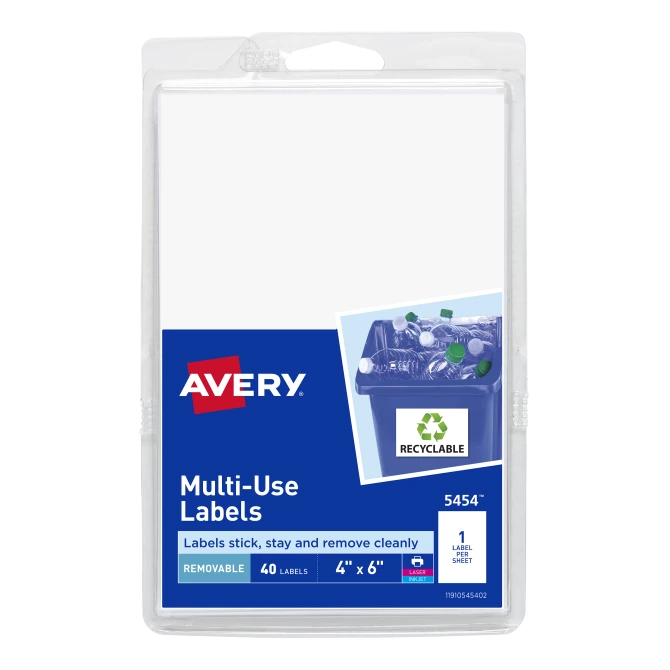 Utiliza el software gratuito de Avery, para crear e imprimir tus propias etiquetas con el template que te brindan. Avery, Removable Labels, Removable Adhesive, 6" x 4", 40 Labels # 05454