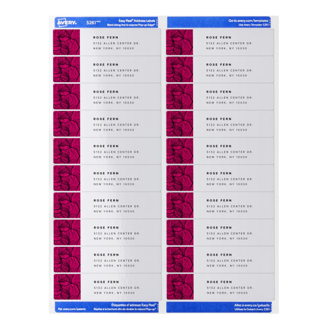 Utiliza el software gratuito de Avery, para crear e imprimir tus propias etiquetas con el template que te brindan. Avery® Easy Peel® Address Labels, Sure Feed™ Technology, Permanent Adhesive, 1" x 4", 500 Labels, # 08161