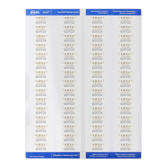 Utiliza el software gratuito de Avery, para crear e imprimir tus propias etiquetas con el template que te brindan. Avery, Easy Peel, Return Address Labels, Sure Feed™ Technology, Permanent Adhesive, 2/3" x 1-3/4", 1,500 Labels # 8195