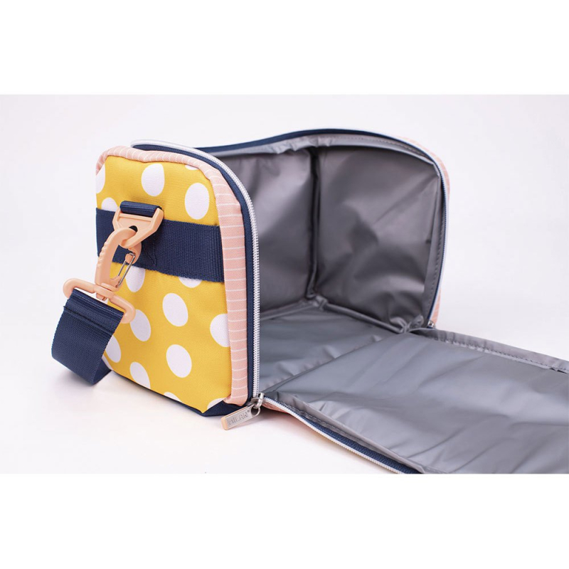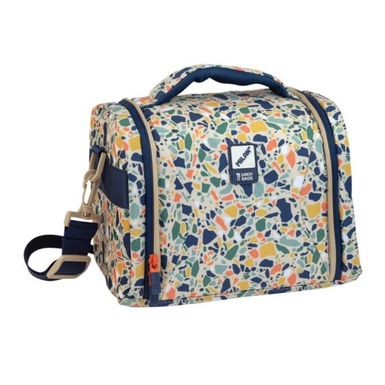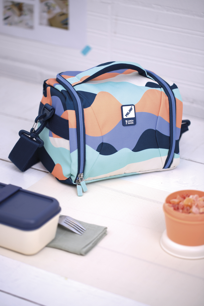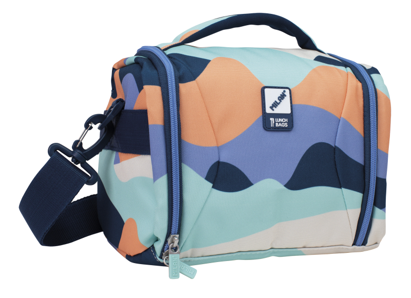 Large capacity isothermal food bag. Series comes in few patterns and colors. Thermal insulated interior (cold/hot) for a better food preservation. Full opening for better accessibility and cleaning. Adjustable and removable strap and top handle. 'Ripstop' outer fabric: light and resistant to riping and tearing. It uses a special technique that weaves thick, reinforcement threads at regular intervals creating a crosspatch pattern. Fabric composition: polyester outer fabric and isothermal inner lining (P.E.V.A.). Size: 24.5 x 20 x 16 cm. Capacity: 5 litres.