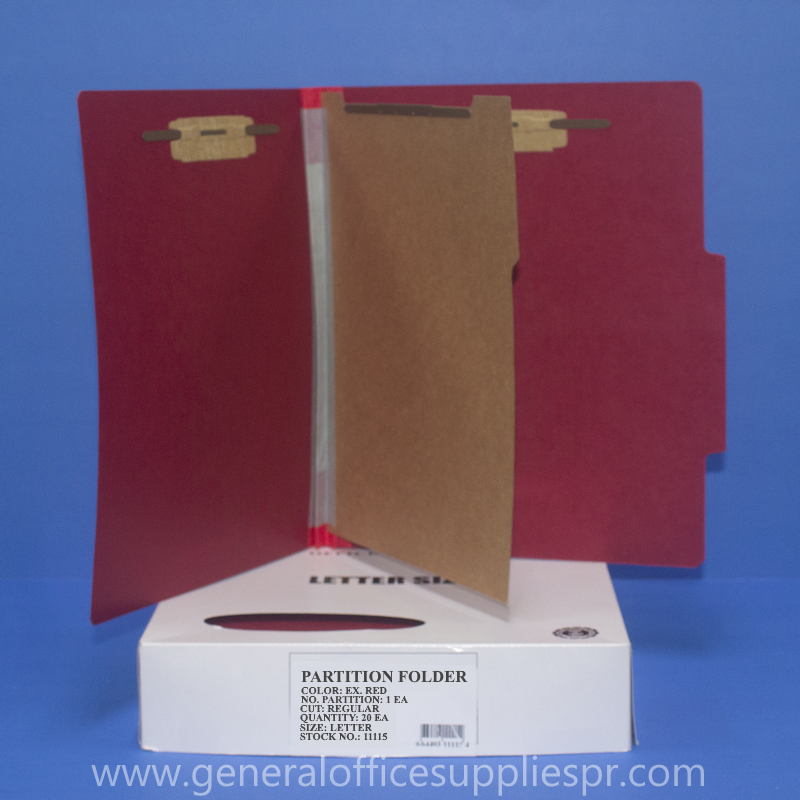 Partition Folders, Standard, 1 Divider, Bonded Fasteners, 2/5 Cut Tab, Executive Red, Letter, 20 per box. Item Number: 11115 ATLAS