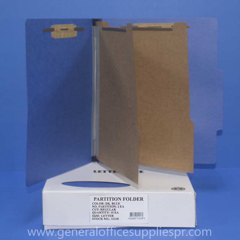 Partition Folders, Standard, 2 Divider, Bonded Fasteners, 2/5 Cut Tab, Dark Blue, Letter, 15 per box. Item Number: 11218 ATLAS