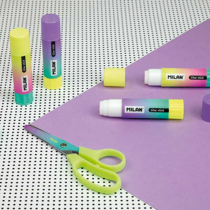 Pegamento en Barra Milan Glue Stick Sunset Series, Washable (paquete de 2). 8 gramos cada uno. Ideal para uso escolar. Modelo BWM10449. Para pegar papel, cartulina, cartón o fotografias. Sin disolventes. Lavable. Importante: Tapar despues de usar.
