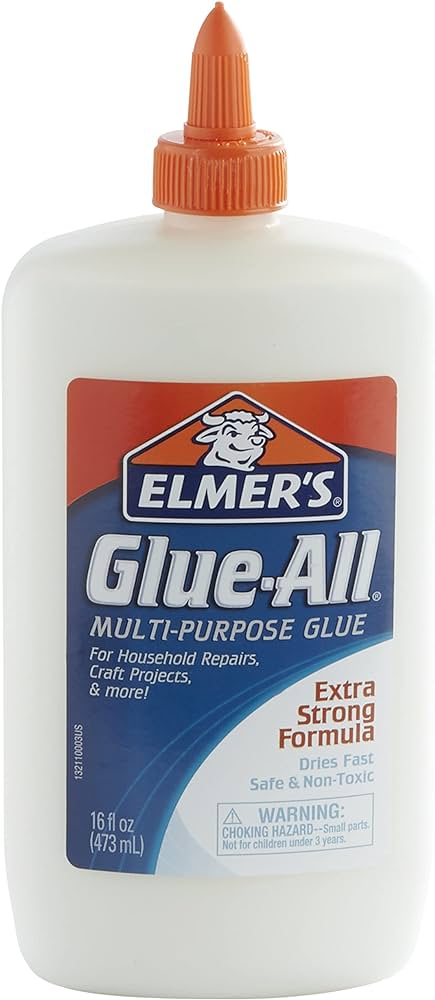Pegamento Líquido Elmer's Glue All, Multipurpose Glue Extra Strong Formula. Se adhiere al papel, madera, tela, cerámica y más, ideal para reparar articulos en el hogar, hacer manualidades o para proyectos escolares. Seguro, con secado rápido y no tóxico. 16oz.