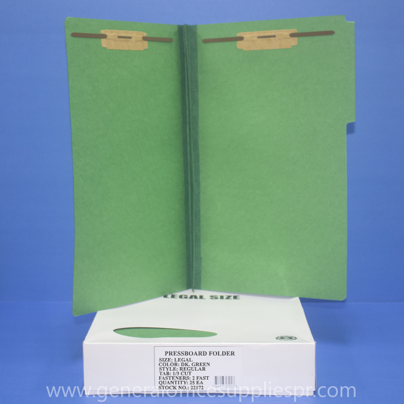 Pressboard Folder, Dark Green, 1/3, Letter, 2 Fastener, Item Number: 21172 ATLAS