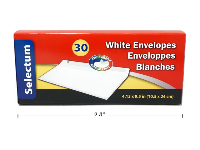Selectum 30 Security White Envelopes SL46914. With Peel and Stick for easy seal. 4.13in x 9.5in. (10.5cm x 24cm).
