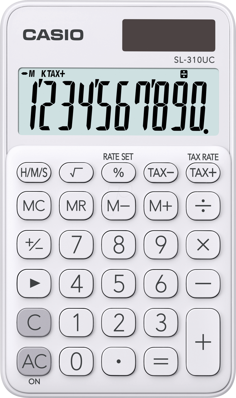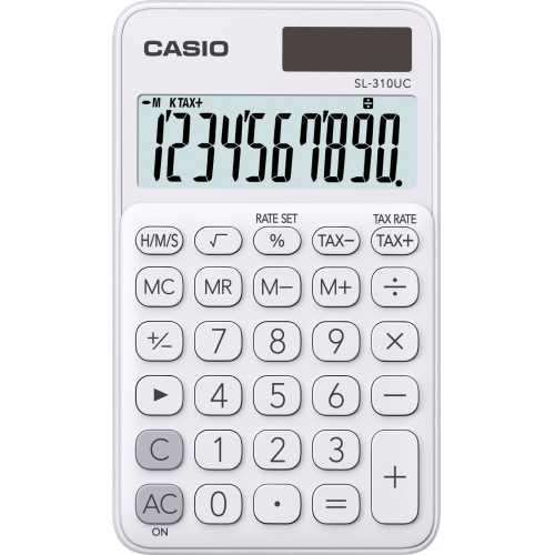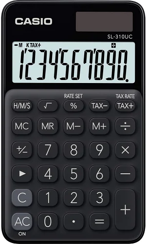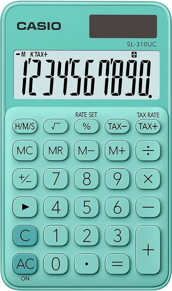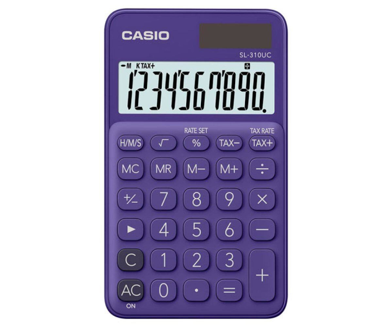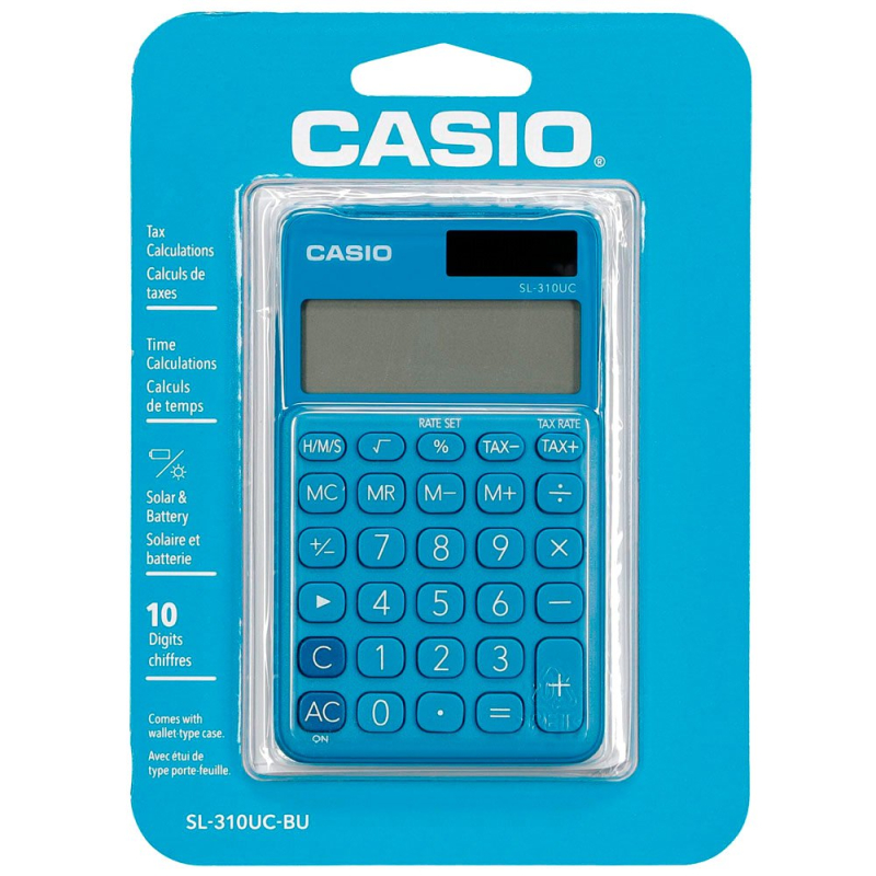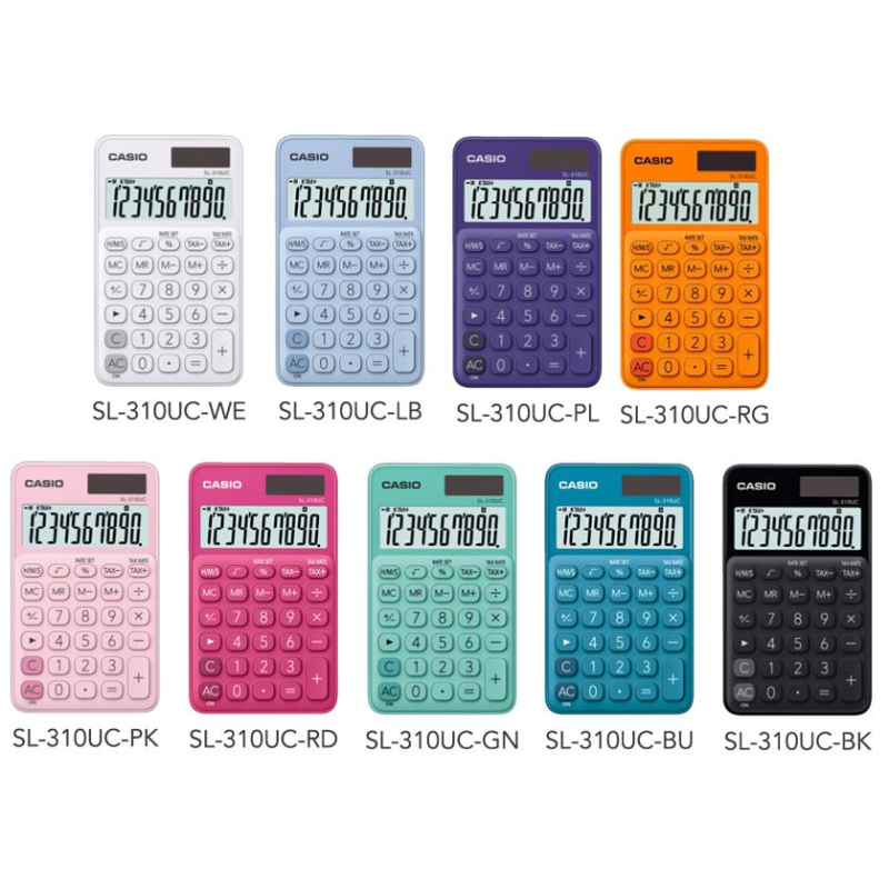 La serie Casio SL-310UC son calculadoras solares en varios colores vibrantes a escoger. Ideal para calculos de impuestos y calculos de tiempo. Viene con pantalla grande de hasta 10 dígitos.