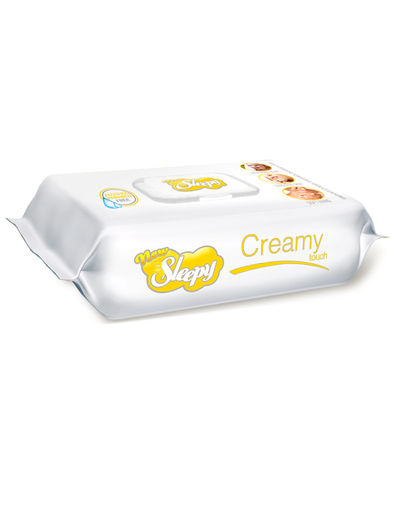 New Sleepy Touch, Multi-purpose sensitive skin fresh scent cleaning, alcohol free wipes - Variety: Comfort , Creamy, Natural and Smooth Toallitas humedas sin alcohol con aroma fresco, 64 unidades por paquete. Suave para las manos y para la piel sensitiva. Contiene poliester. Desechables. Ideal para picnics, viajes en auto, avión o usarlas luego de hacer deportes. Descarte solo en zafacones, no en toilets.