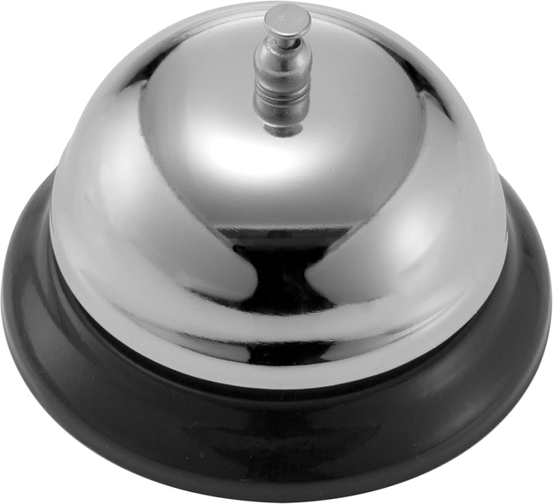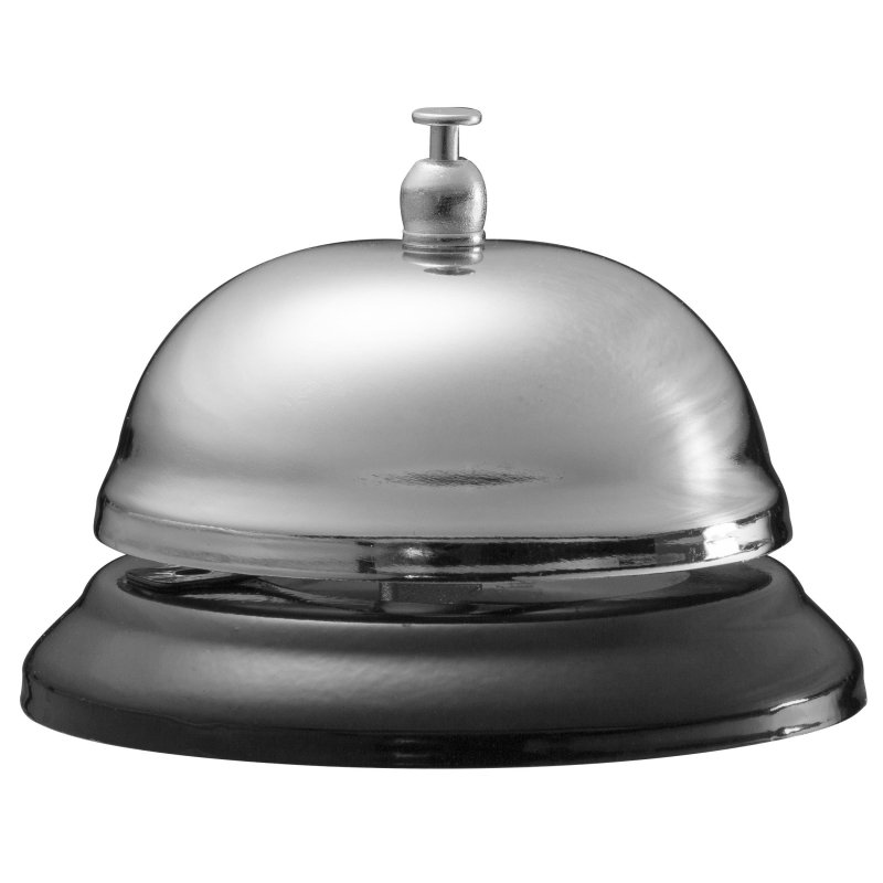Officemate: Timbre de llamada, niquelado con base negra. Artículo 93671 Este clásico timbre de llamada tiene un timbre claro y es perfecto para usar en mostradores o áreas de recepción.