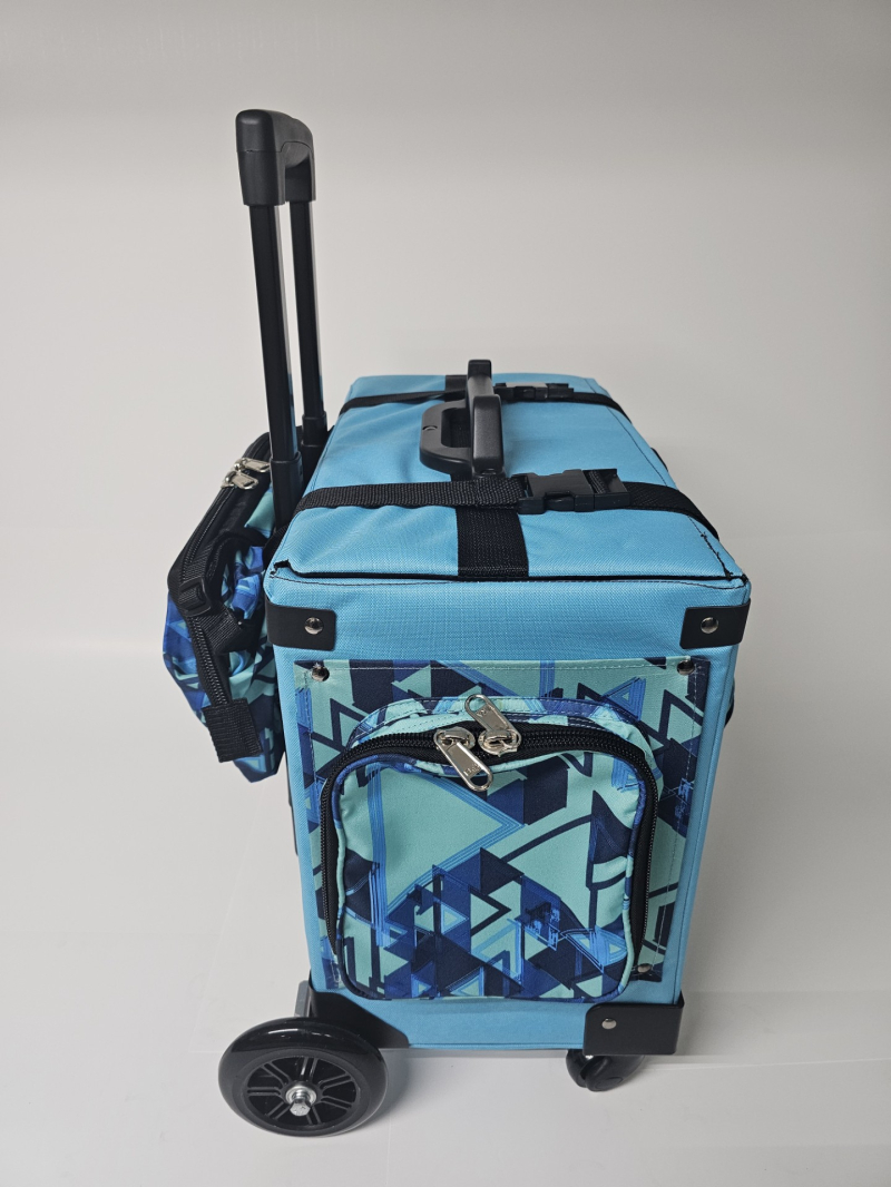 Bulto con ruedas marca Tripper. Hechos en Puerto Rico. Combinación de varios tonos. Cada uno incluye: Una Lonchera con abertura tipo "Wide Mouth" y una cartuchera con hebilla que se adhiere al bulto. Ademas, cada bulto viene equipado con: Dos bolsillos insulados a cada lado. Bolsillos tipo sobre, con zipper al frente. Capacidad de sobre 6 resmas. Correa tipo maleta para colgar cartuchera incluida o un bulto adicional. Sistema "Big Wheel" de dos ruedas grandes traceras para cómodo desplazamiento silencioso y dos ruedas giratorias al frente.