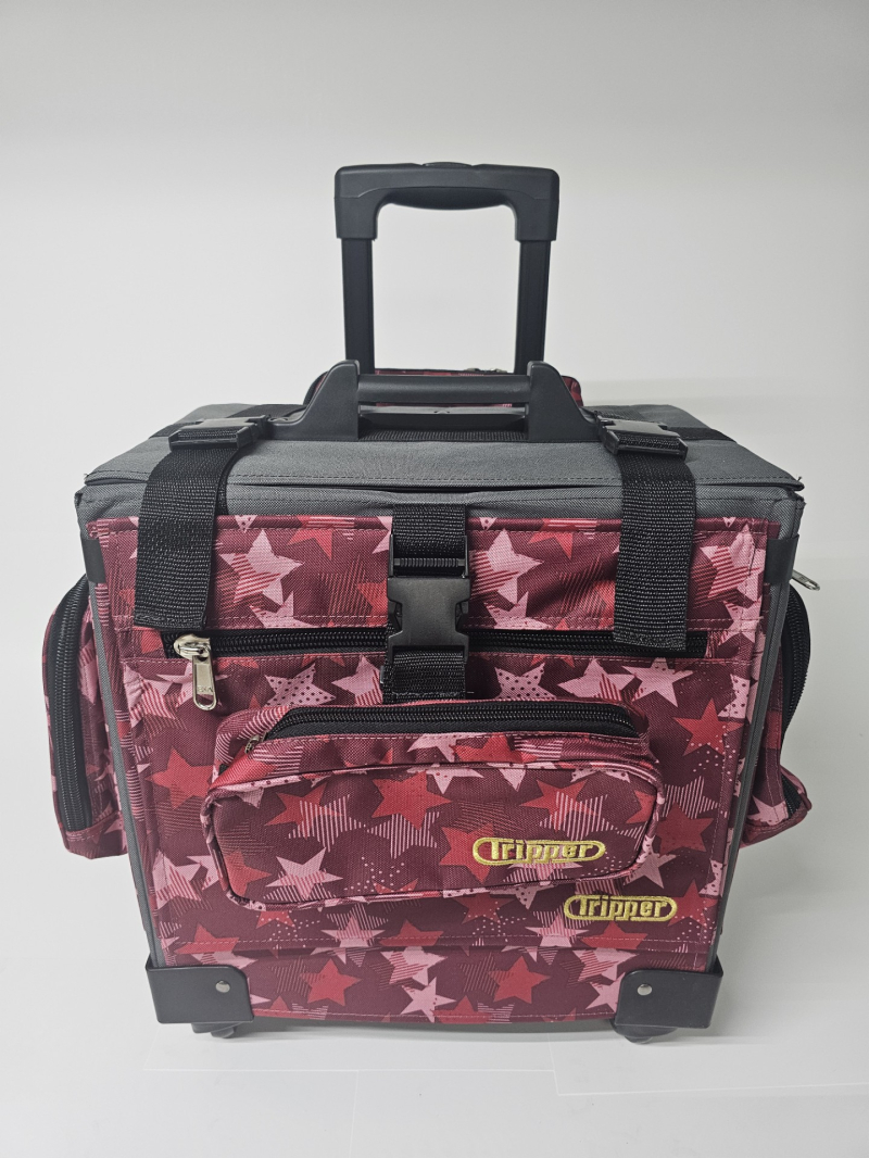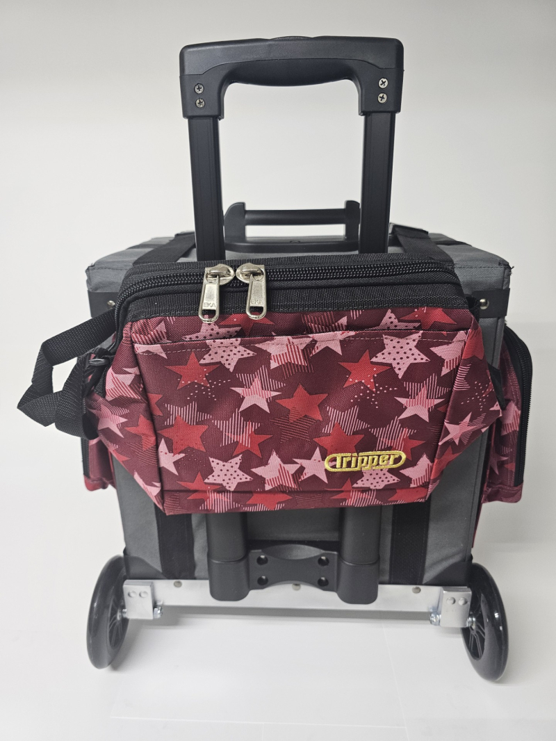 Bulto con ruedas marca Tripper. Hechos en Puerto Rico. Combinación de varios tonos. Cada uno incluye: Una Lonchera con abertura tipo "Wide Mouth" y una cartuchera con hebilla que se adhiere al bulto. Ademas, cada bulto viene equipado con: Dos bolsillos insulados a cada lado. Bolsillos tipo sobre, con zipper al frente. Capacidad de sobre 6 resmas. Correa tipo maleta para colgar cartuchera incluida o un bulto adicional. Sistema "Big Wheel" de dos ruedas grandes traceras para cómodo desplazamiento silencioso y dos ruedas giratorias al frente.