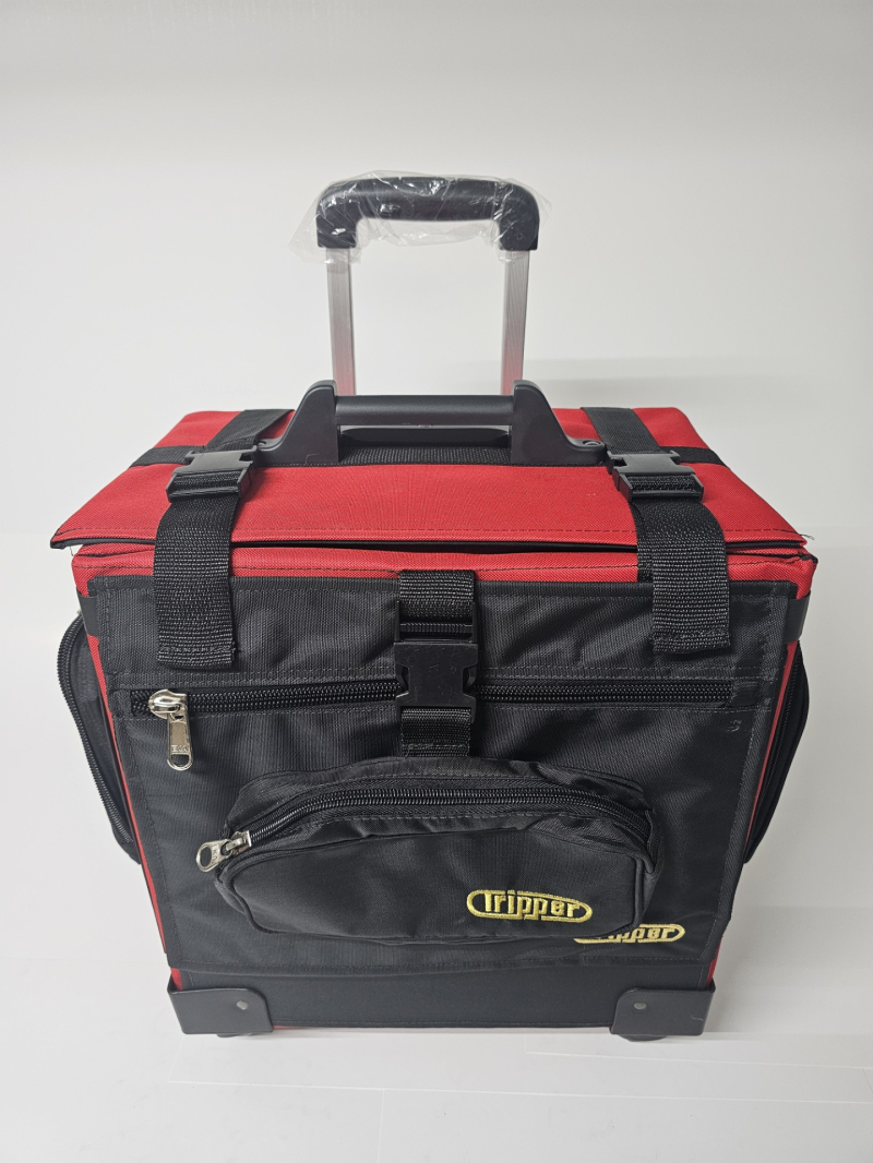 Bulto con ruedas marca Tripper. Hechos en Puerto Rico. Combinación de varios tonos. Cada uno incluye: Una Lonchera con abertura tipo "Wide Mouth" y una cartuchera con hebilla que se adhiere al bulto. Ademas, cada bulto viene equipado con: Dos bolsillos insulados a cada lado. Bolsillos tipo sobre, con zipper al frente. Capacidad de sobre 6 resmas. Correa tipo maleta para colgar cartuchera incluida o un bulto adicional. Sistema "Big Wheel" de dos ruedas grandes traceras para cómodo desplazamiento silencioso y dos ruedas giratorias al frente.