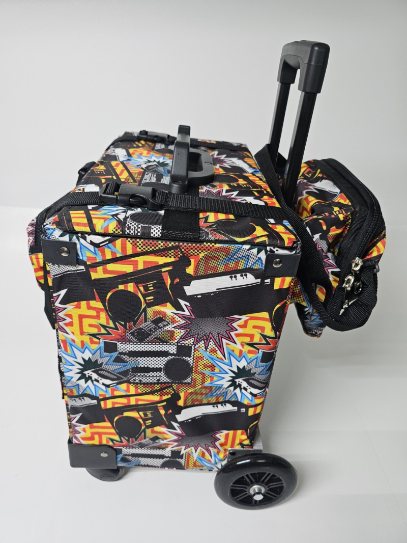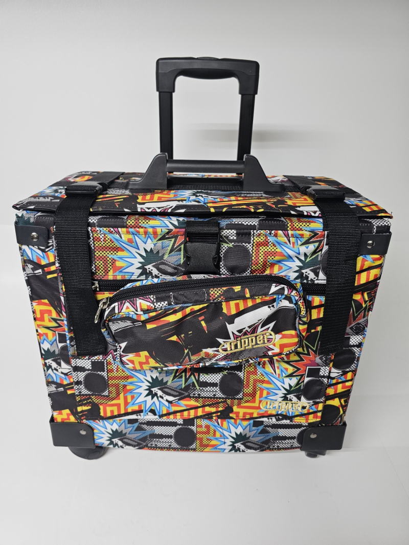 Bulto con ruedas marca Tripper. Hechos en Puerto Rico. Combinación de varios tonos. Cada uno incluye: Una Lonchera con abertura tipo "Wide Mouth" y una cartuchera con hebilla que se adhiere al bulto. Ademas, cada bulto viene equipado con: Dos bolsillos insulados a cada lado. Bolsillos tipo sobre, con zipper al frente. Capacidad de sobre 6 resmas. Correa tipo maleta para colgar cartuchera incluida o un bulto adicional. Sistema "Big Wheel" de dos ruedas grandes traceras para cómodo desplazamiento silencioso y dos ruedas giratorias al frente.